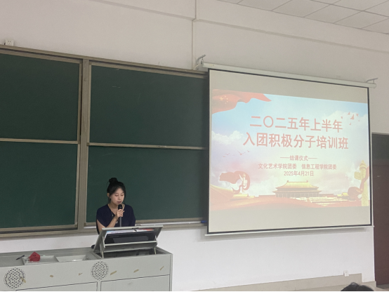 为深化青年思想政治引领,提升新时代青年思想理论水平,切实引导青年学子深入学习贯彻习近平总书记关于青年工作的重要思想。4月14日至21日,在校团委的指导下,文化艺术学院团委携手信息工程学院,以专题团课为主要形式,联合开展入团积极分子培训活动,铸牢青年学子信仰之基,赋能时代新人奋进之力。
