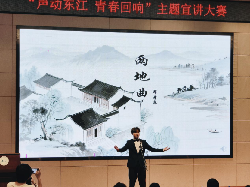 团委张泽旖老师肯定选手的历史深度与时代思考,并从主题聚焦、情感表达等维度提出优化建议。邓孝淼同学献唱《两地曲》,悠扬旋律诠释东纵将士舍家为国的情怀,为赛事增添艺术感染力。