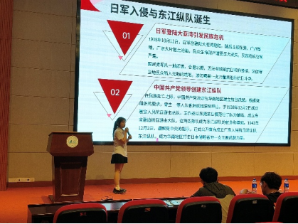 来自全校六个二级学院的优秀宣讲员依次登台。他们以充沛的情感、翔实的史料和深刻的见解,将东江纵队在烽火岁月中淬炼出的革命精神,化作一幕幕动人心魄的叙述。选手们或慷慨激昂,重现战士浴血奋战的壮烈;或娓娓道来,追忆军民鱼水情深的感人瞬间;或理性剖析,阐述东纵精神对当代青年的深刻启示。