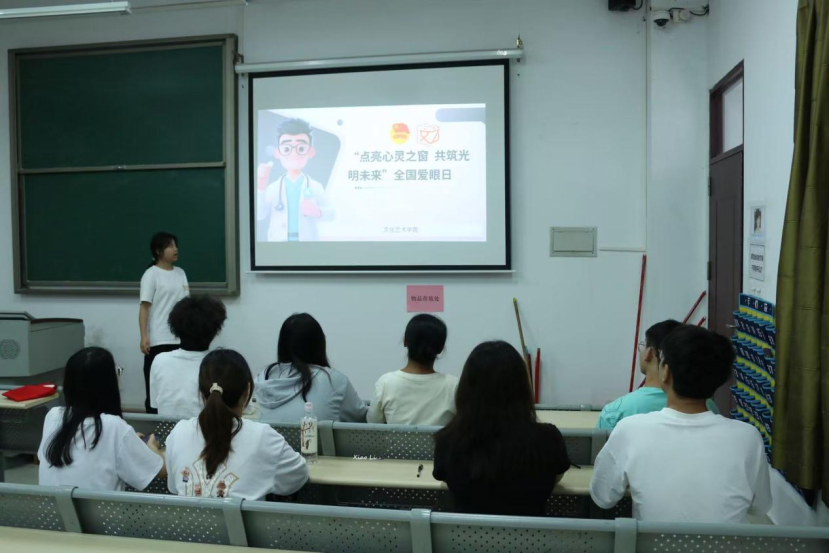 6月4日,文化艺术学院在酒管楼A108举办“点亮心灵之窗 共筑光明未来”全国爱眼日主题活动,团学干部参与其中。